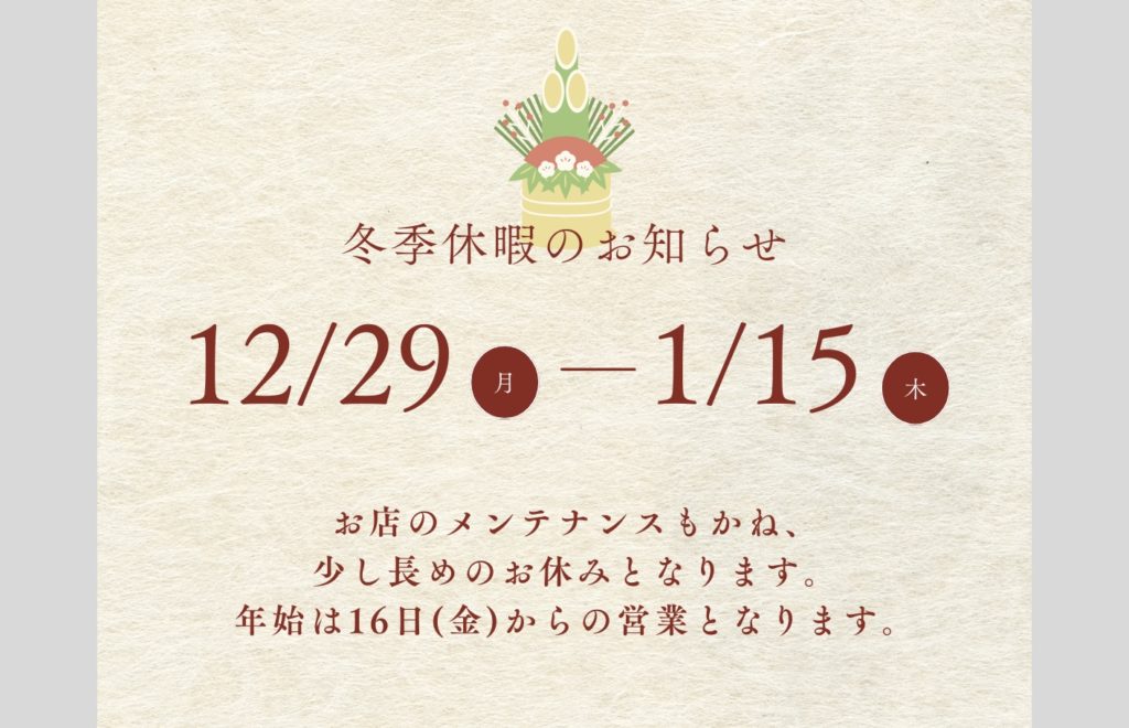 冬季休暇は12月29日(月)〜1月15日(木)までとなり、